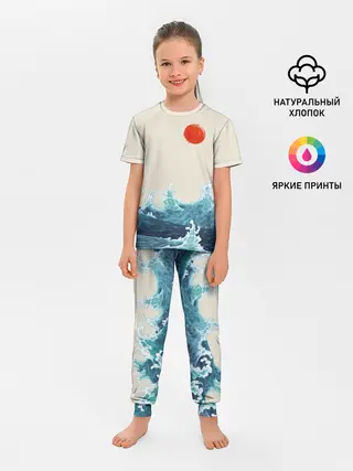 Детская пижама с брюками / Японский Стиль Волны и Солнце
