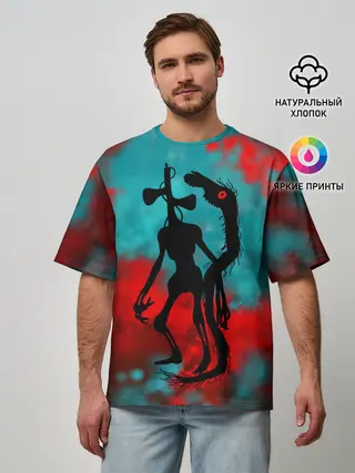 Мужская футболка оверсайз / Сиреноголовый и Лошадь монстры