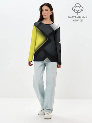 Лонгслив женский. Хлопок / Желто черный ромб