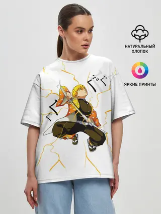 Женская футболка оверсайз / Agatsuma Zenitsu Kimetsu no Yaiba