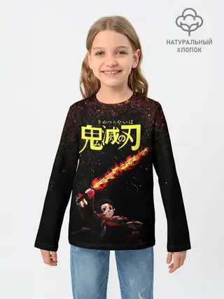 Мужской лонгслив базовый / Танджиро Камадо в огне