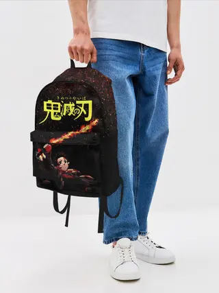 Рюкзак джинсовый / Танджиро Камадо в огне