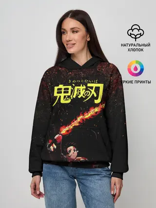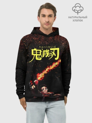 Худи мужской база хлопок / Танджиро Камадо в огне