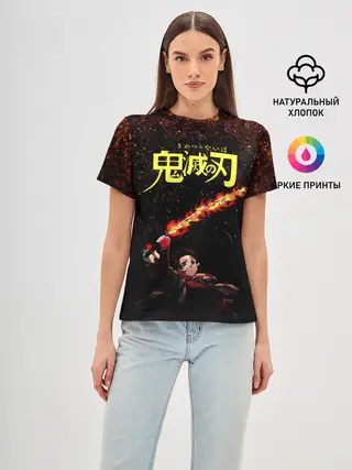 Женская футболка оверсайз / Танджиро Камадо в огне
