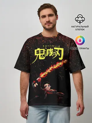 Мужская футболка оверсайз / Танджиро Камадо в огне