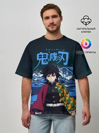 Мужская футболка оверсайз / Гию Томиока Кокушибо Kimetsu no Yaiba