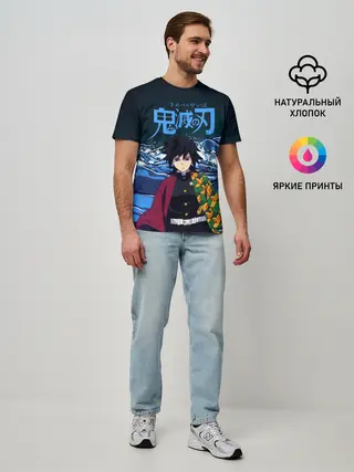 Мужская базовая футболка / Гию Томиока Кокушибо Kimetsu no Yaiba