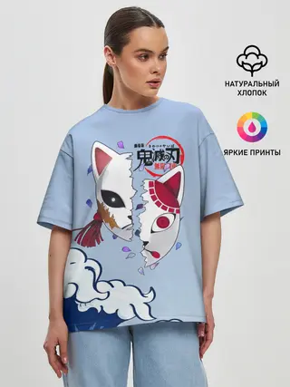 Женская футболка оверсайз / Маски из Клинок, рассекающий демонов