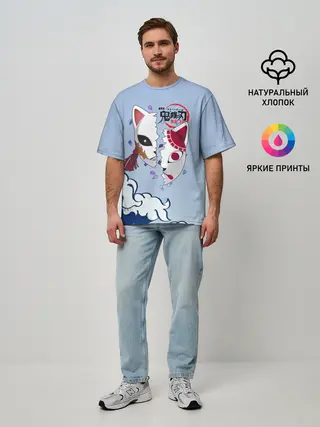 Мужская футболка оверсайз / Маски из Клинок, рассекающий демонов
