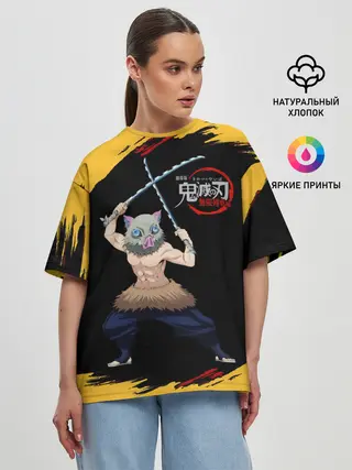 Женская футболка оверсайз / Иноске Хашибира Kimetsu no Yaiba