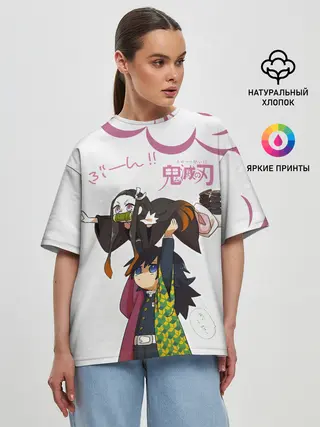 Женская футболка оверсайз / Гию и Незуко Kimetsu no Yaiba