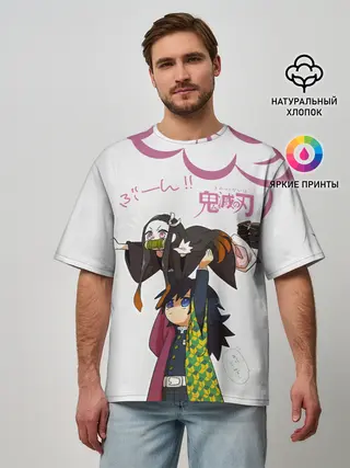 Мужская футболка оверсайз / Гию и Незуко Kimetsu no Yaiba