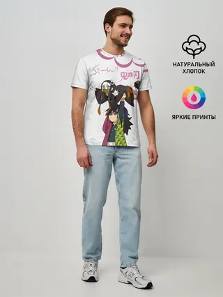 Мужская базовая футболка / Гию и Незуко Kimetsu no Yaiba