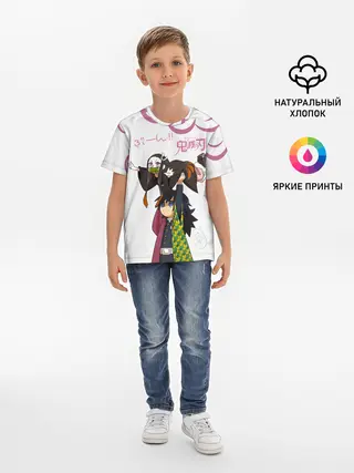 Детская базовая футболка / Гию и Незуко Kimetsu no Yaiba