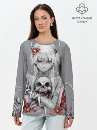Лонгслив женский. Хлопок / Девушка с черепом