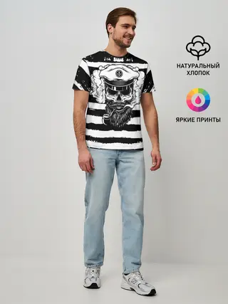 Мужская базовая футболка / ТЕЛЬНЯШКА ВМФ | ЧЕРЕП ФУРАЖКА