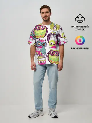 Мужская футболка оверсайз / МУДРЫЕ СОВЫ | WISE OWLS