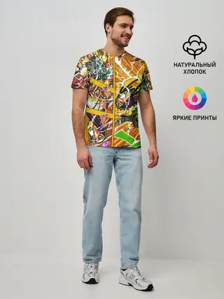 Мужская базовая футболка / Оранжевый комикс JoJo