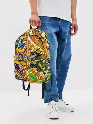 Рюкзак джинсовый / Оранжевый комикс JoJo