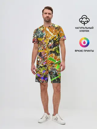 Мужской костюм с шортами / Оранжевый комикс JoJo