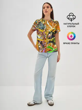 Женская футболка оверсайз / Оранжевый комикс JoJo
