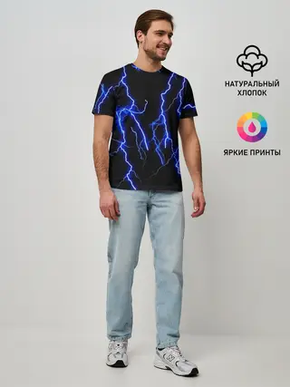Мужской лонгслив базовый / Цветные треугольники_голубой