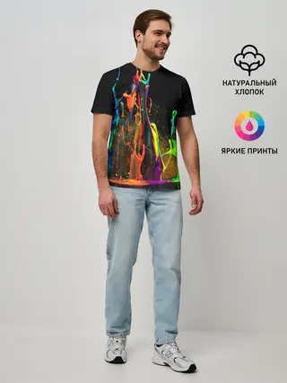 Мужской лонгслив базовый / Цветные треугольники_ салатовы
