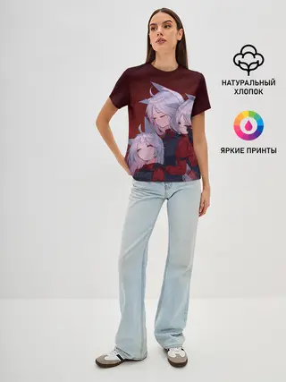 Женская базовая футболка / Cerberus обнимаются втроем Helltaker