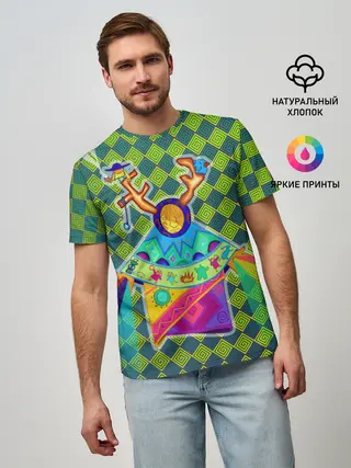 Мужской лонгслив базовый / Звери природа индейцы этно