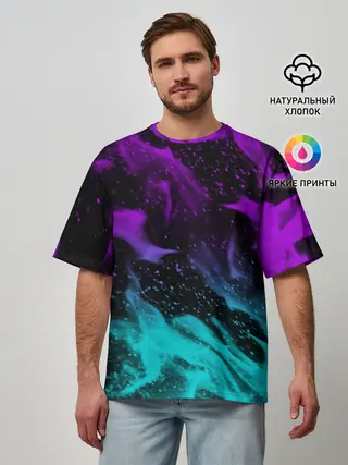 Мужская футболка оверсайз / НЕОНОВЫЙ ОГОНЬ