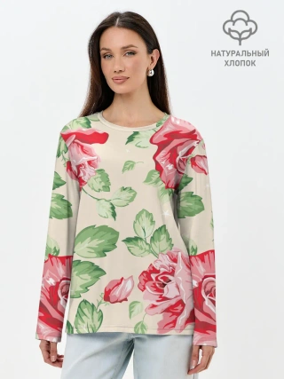 Лонгслив женский. Хлопок / Розы