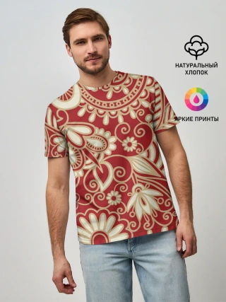 Мужская футболка оверсайз / Бело-красный цветочный