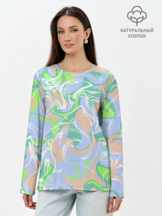 Лонгслив женский. Хлопок / Разноцветные разводы красок