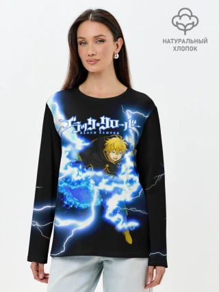 Лонгслив женский. Хлопок / Чёрный клевер удар молнии