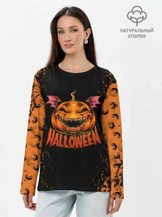 Лонгслив женский. Хлопок / ВЕСЕЛАЯ ТЫКВА | ХЭЛЛОУИН