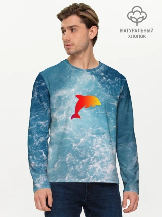 Мужской лонгслив базовый / Дельфин в море
