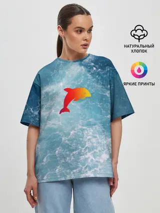 Женская футболка оверсайз / Дельфин в море