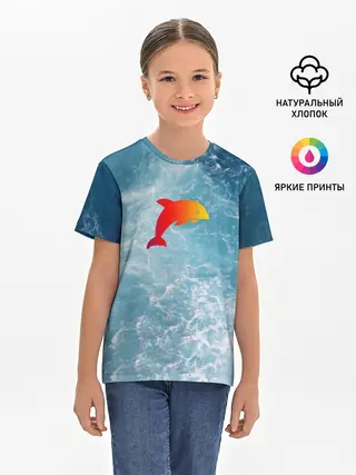 Детская базовая футболка / Дельфин в море
