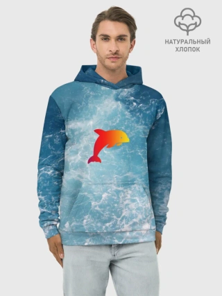 Худи мужской база хлопок / Дельфин в море