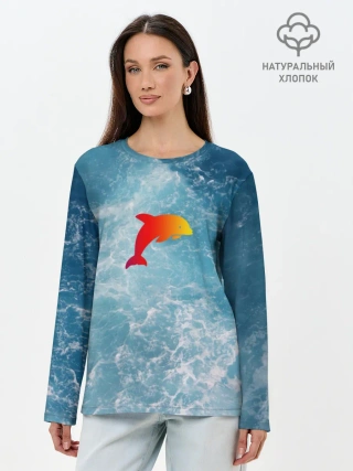 Лонгслив женский. Хлопок / Дельфин в море
