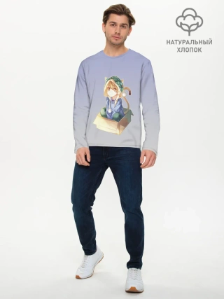 Мужской лонгслив базовый / мальчик кот в коробке уши мяу