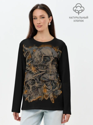Лонгслив женский. Хлопок / Черепа