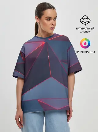 Женская футболка оверсайз / Неоновый треугольник.