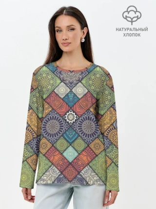 Лонгслив женский. Хлопок / ЛОСКУТНАЯ ВЫШИВКА
