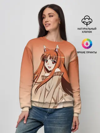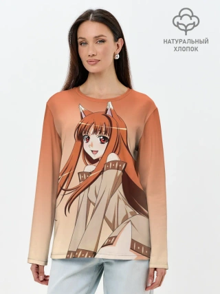 Лонгслив женский. Хлопок / Милая аниме девочка-оборотень