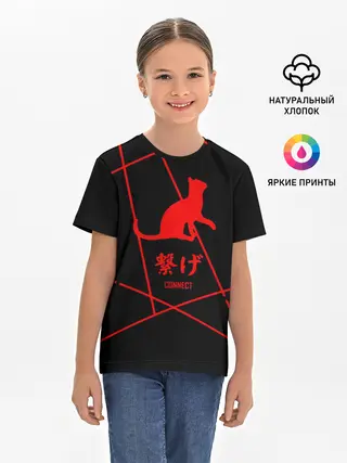 Детская базовая футболка / Старшая Некома кот | Haikyuu!!