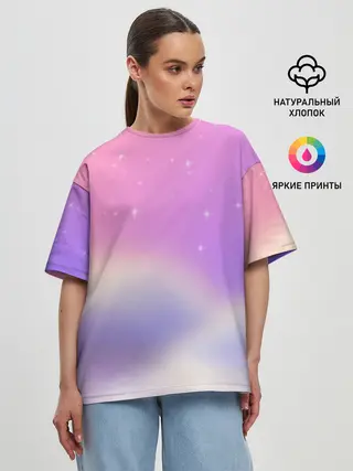 Женская футболка оверсайз / Звёздное небо розовый закат