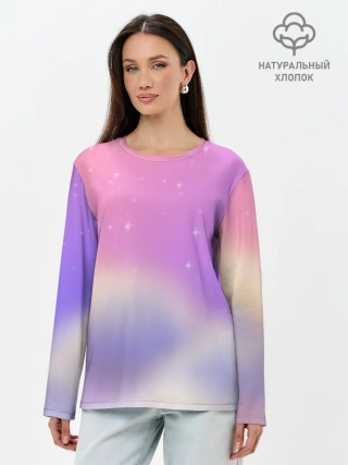 Лонгслив женский. Хлопок / Звёздное небо розовый закат