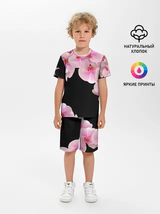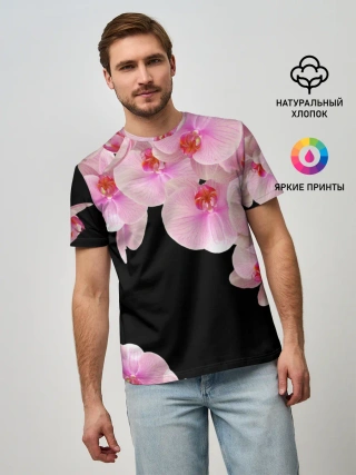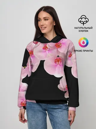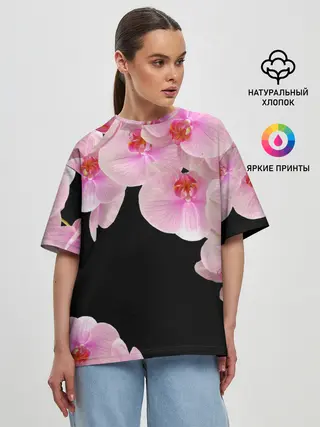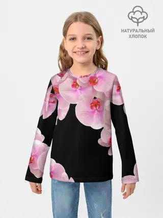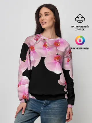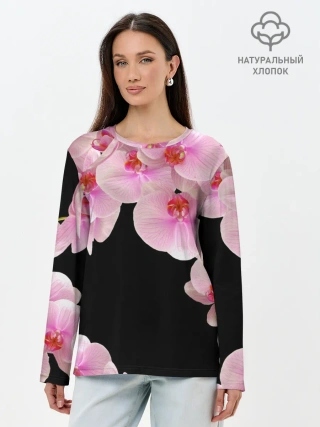Лонгслив женский. Хлопок / Орхидеи в ночи