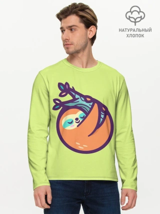 Мужской лонгслив базовый / Ленивец спит на ветке рисунок